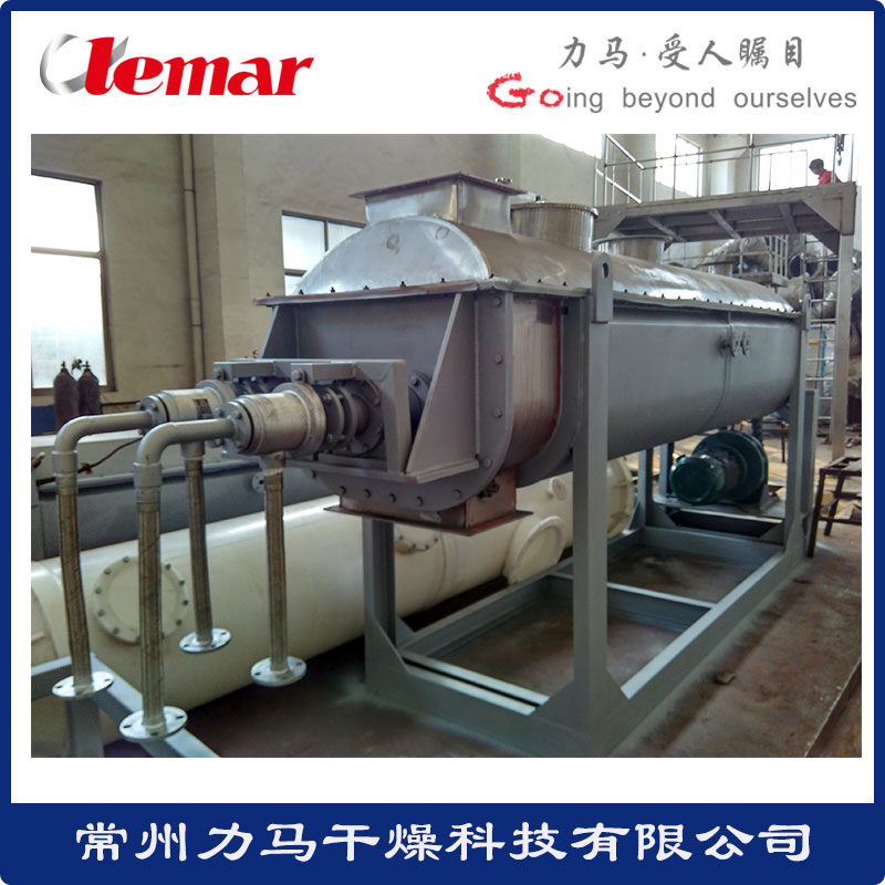 此次客户订购的空心桨叶干燥机主要用于干燥化工污泥,处理量为400-500KG/8H,初始水份为80%左右,经过干燥后^终水份在35%-40%之间,采用的饱和蒸汽作为热源,整机接触物料部分均采用了304不锈钢制作。
