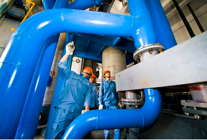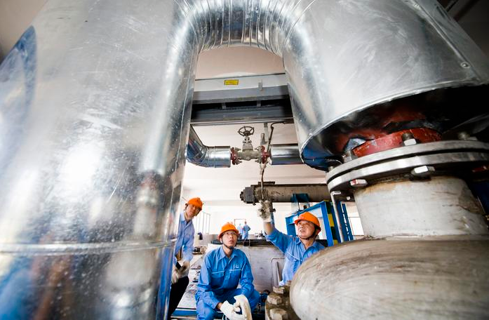 (图为技术人员正在检查污泥干化设备运行情况)
